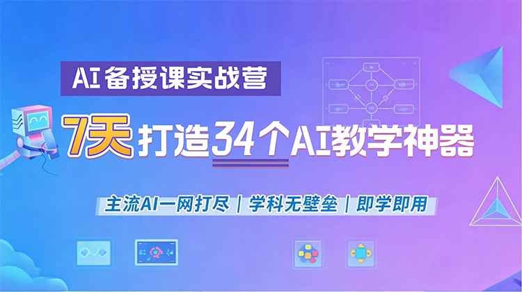 7天密集实训,手把手教您掌握34个经过课堂验证的AI教学场景应用,每个工具都对应一个真实教学痛点,每个案例都能直接复制到您的课堂。工具全覆盖,主流AI一网打尽。学科无壁垒,全学段通用